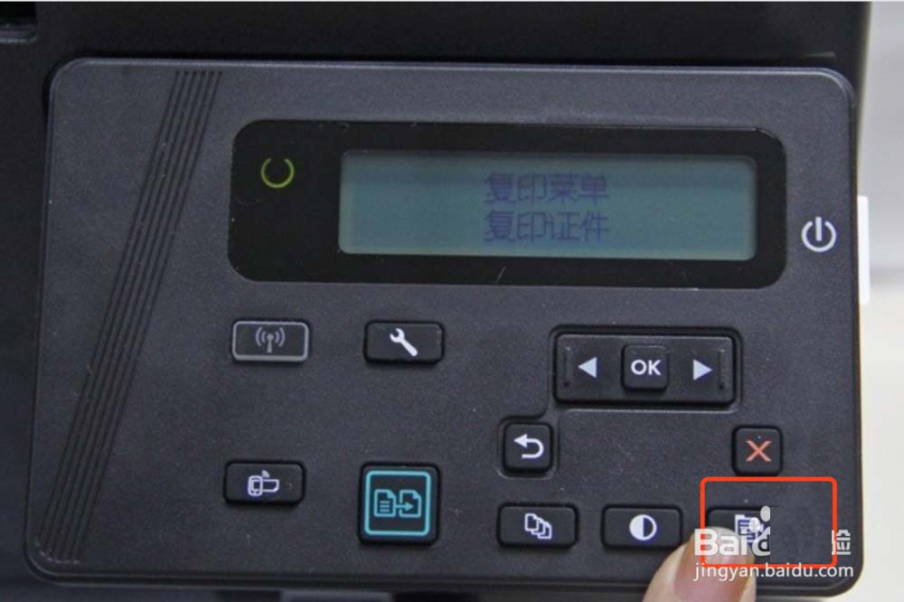 1、首先按复印参数键按钮,找到复印菜单,显示复印证件;按OK键进入;