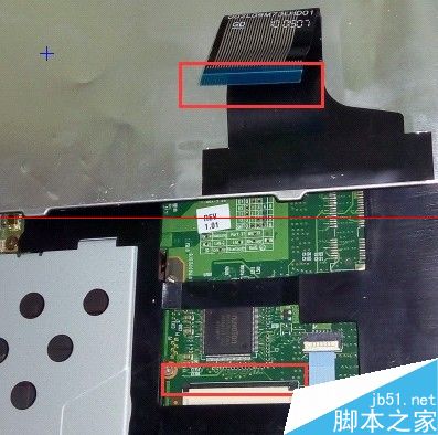 6、用一字螺丝刀或指甲向上扣开排线两边的卡扣,然后拿出排线。