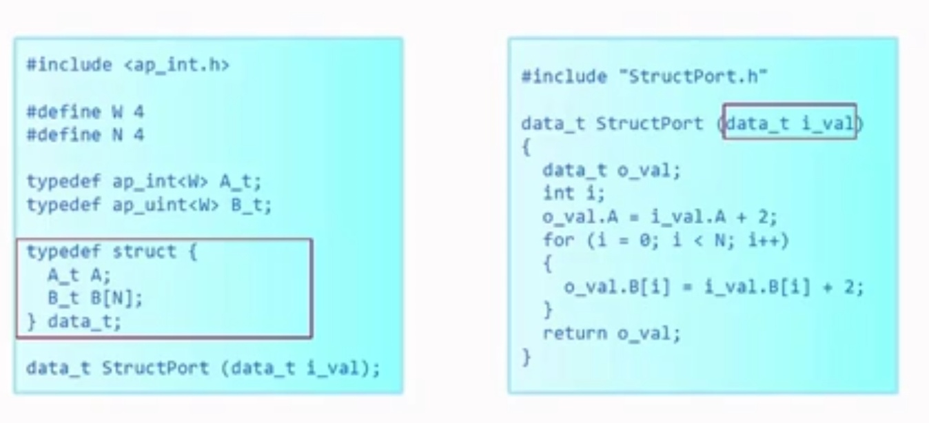Vivado HLS中的复合数据类型类似于C语言中的结构体,但是没有C语言结构体类型中的指针类型,如下两例: