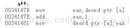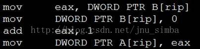 注:实际上这里是指将a 读取到寄存器eax是atomic的,赋值语句b=a 包括两条汇编命令,不是atomic的)