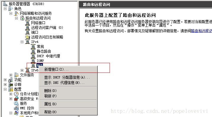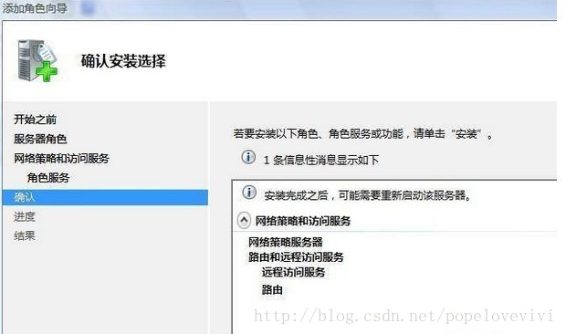 本人原创,转载请注明CSDN转载,如有错误欢迎指正 谢谢! 由于公司突然不让上QQ和旺旺之类的聊天工具,一直对外联系也靠QQ,现在突然间没有办法使用基本上就断了对外联系的工具,本人通过公司的一个小型服务器为自己搭建了一个vpn,暂时先使用着,过程不复杂现在和大家分享一下,因为服务器网段没有限制所以出此下策,操作如下: 首先需要一个服务器(废话)如下图: 第一步:安装角色: