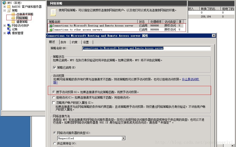 第三、配置“网络策略服务”如果不配置,在您登录VPN的时候就会报一个“812”的错误