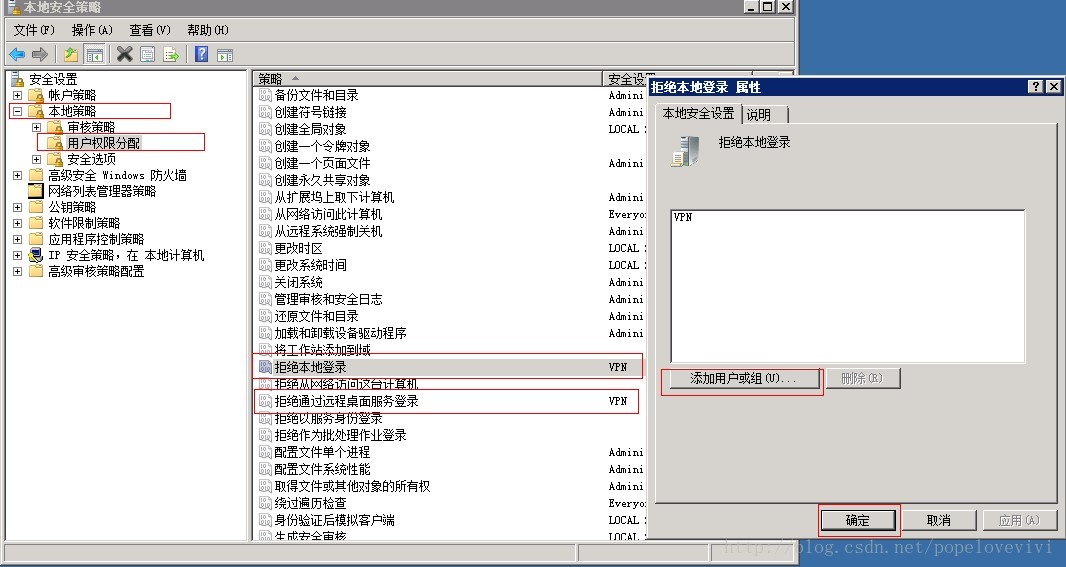 点击进入:我建议大家设置这里两个策略,方式用户直接无聊登录服务器,把策略应用到你相应的“用户组”即可,我这里是VPN用户组