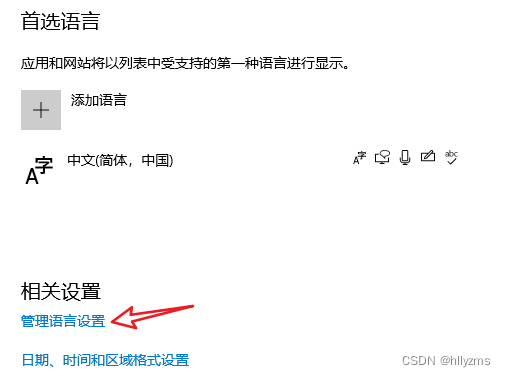 点击语言设置 之后 相关设置》管理语言设置