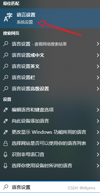 win10搜索框搜索: 语言设置