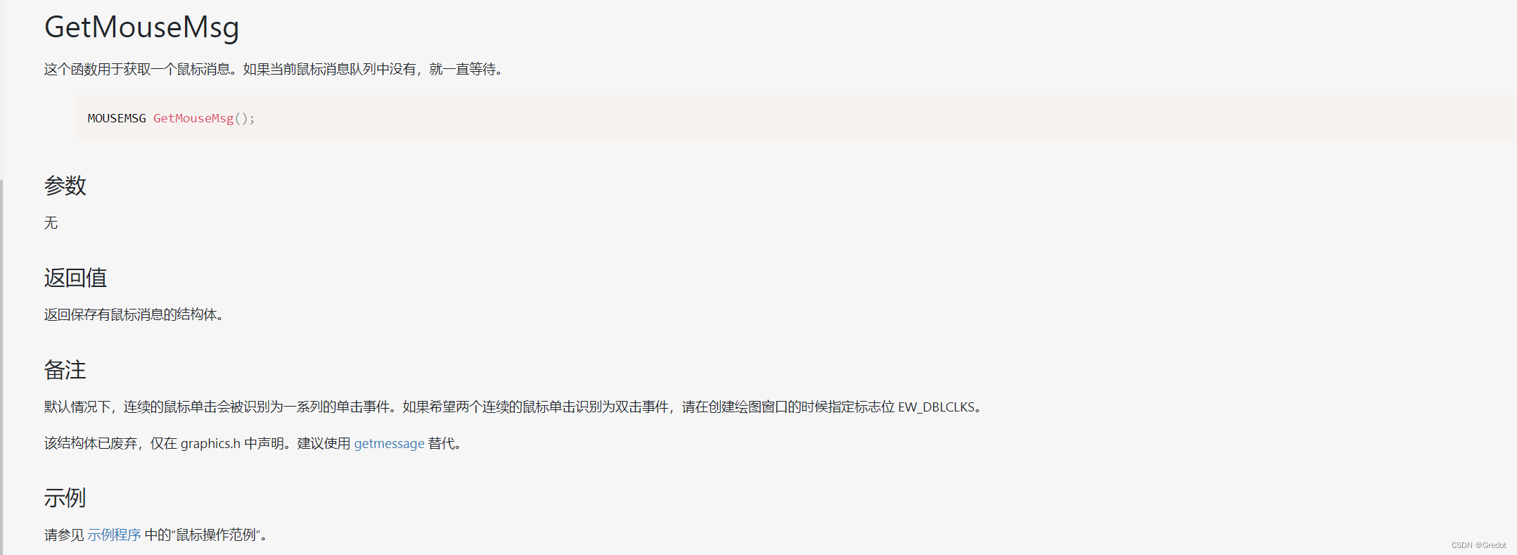 我们可以在EasyX的帮助文档对Easy X库中的函数学习,这里举个例子,后面不再赘述啦