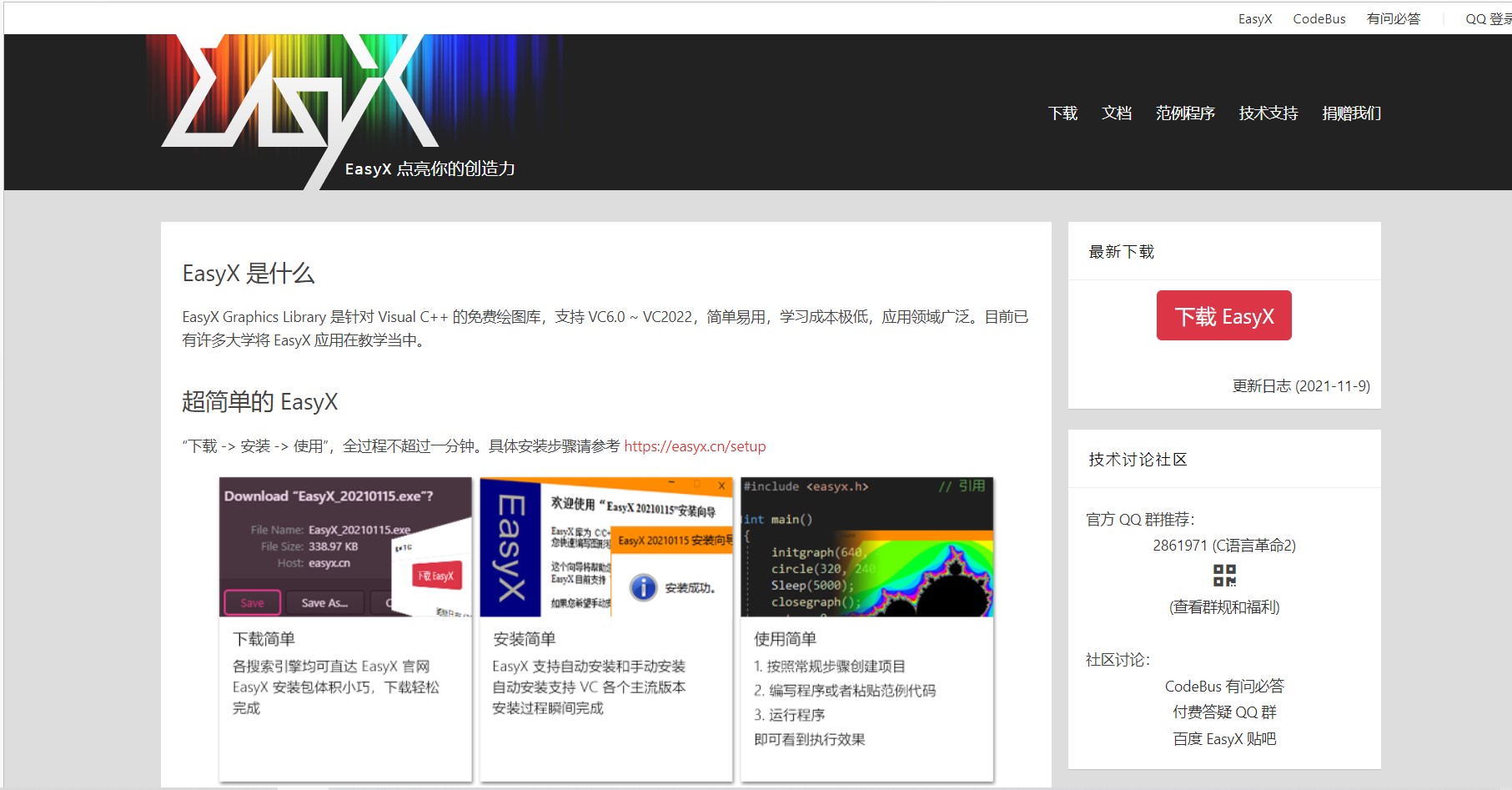 第一步:打开网页搜索:EasyX,登录官网: