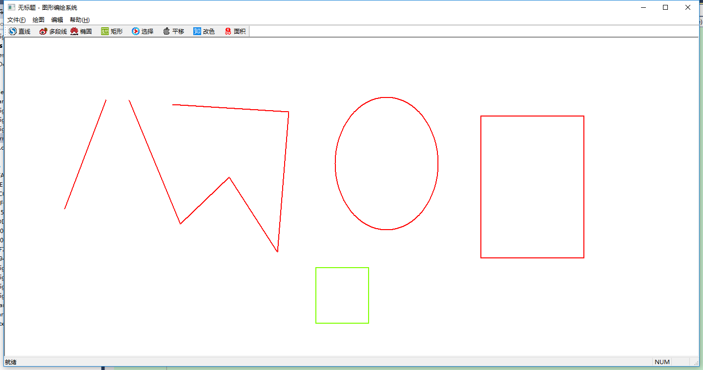 主要功能包括:画直线、画多段线、画椭圆、画矩形;鼠标单击Hittest点选所画图形并能进行平移、改色、计算面积/长度操作。