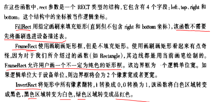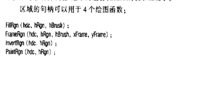 FillRgn ,FrameRng和InvertRng类似于FillRect,FrameRect和InvertRect FrameRgn的xFrame和yFrame参数是画在区域周围的边框的宽度和高度。PaintRgn函数用设备描述表中当前画刷填充指定的区域。