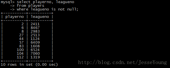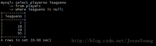 如果要获得非联盟成员的所有球员的信息,只需将is not null改为is null 即可