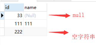 insert into user values('33',null); ##创建一条name为空的数据
