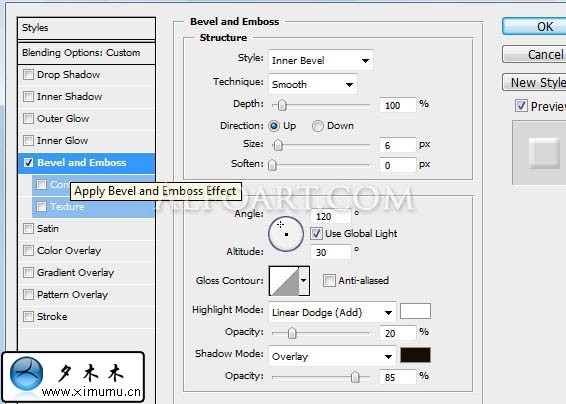 然后再新建一个图层.在这个图层上填充任何一种颜色,并更改填充=0%.下一步,我们双击这个图层,打开图层样式,设置如下图.