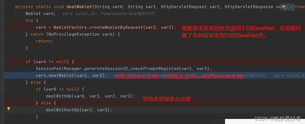 这里插一句,不同报表对应的weblet,帆软报表默认提供了6种实现: