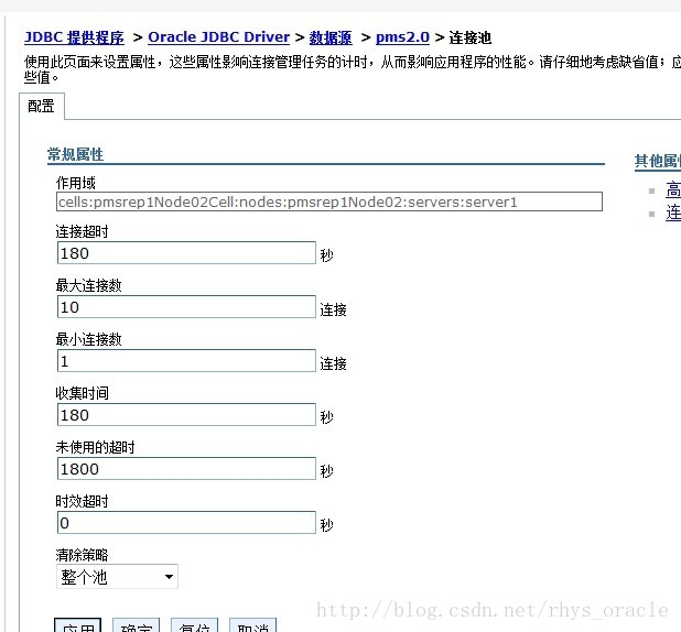 那么该数据库对应的前端为websphere中间件,对于中间件来说》连接池里的initpool是长连接。查看属性配置如下: