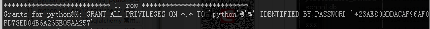 mysql> grant all on *.* to 'python'@'%' identified by '123'; #创建一个用户名:Python、密码:123,可管理整个mysql所有的数据库,%允许所有IP和主机名:允许该主机名或者该IP使用该python用户连接