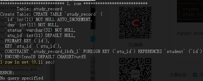 [root@python ~]# cd burgess_test/1.创建两张表,student和study_record外键关联student表ID
