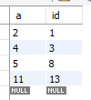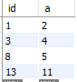此时表中的数据以id、a的顺序展示如下,注意id是主键: