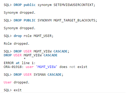 drop user MGMT_VIEW cascade;