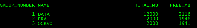 9.提前设定好磁盘组的空间大小,不然到时候还要给磁盘组加磁盘,我的OMS涉及到的表空间都放到DATA磁盘组中,空间仅供参考
