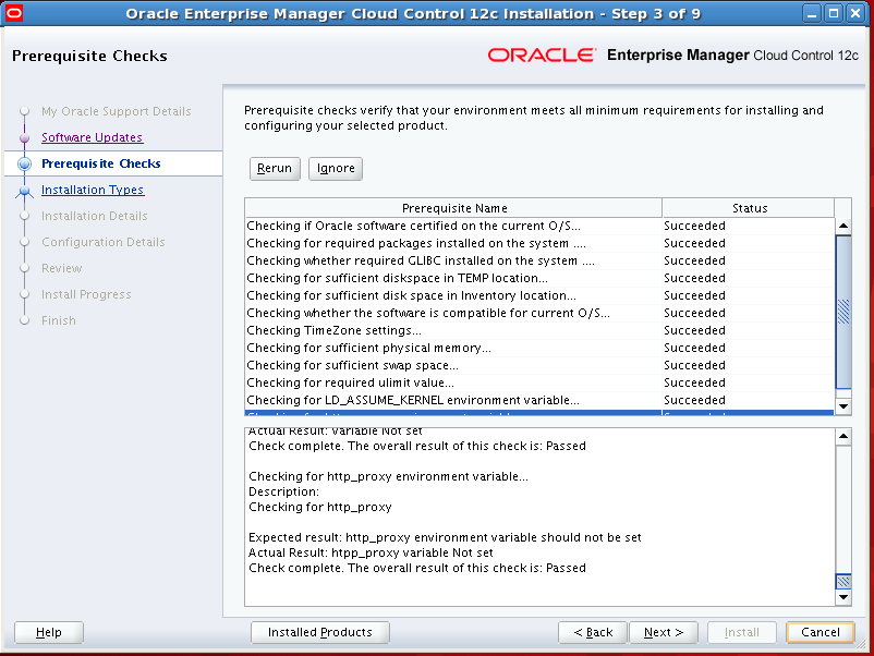 2.Prerequisite Checks会检测EM安装的前提条件,这里全部成功