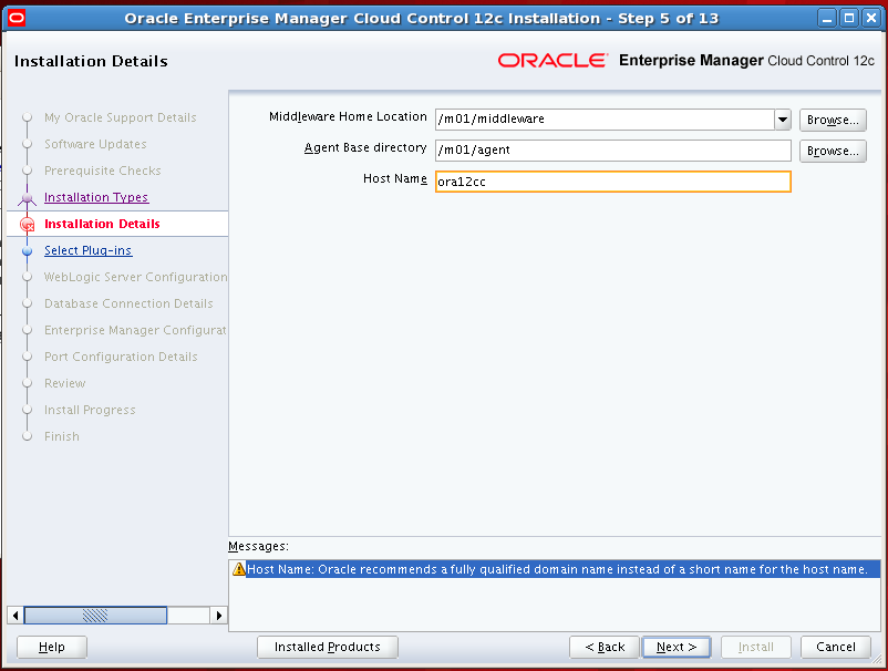 这里要求EM主机必须使用statics IP 静态IP ,否则安装会出错, 且已正确在/etc/hosts或DNS配置唯一的域名解析