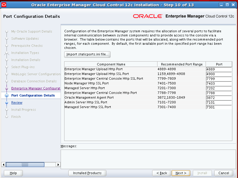 9.选择EM 12c将要使用的端口,一般默认即可,除非这些端口有其他用途: