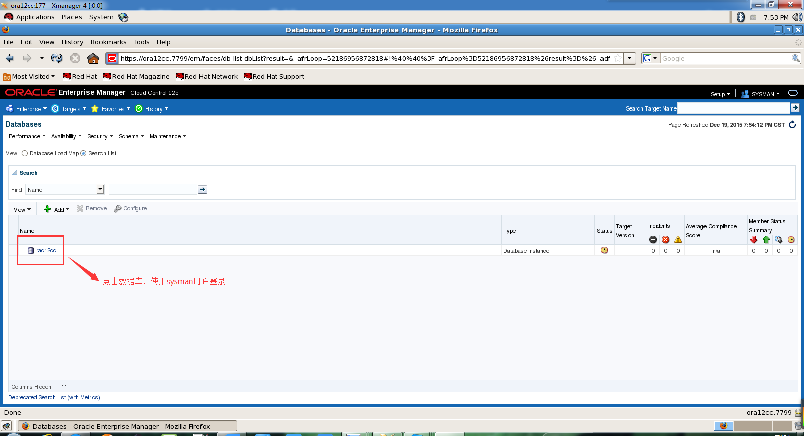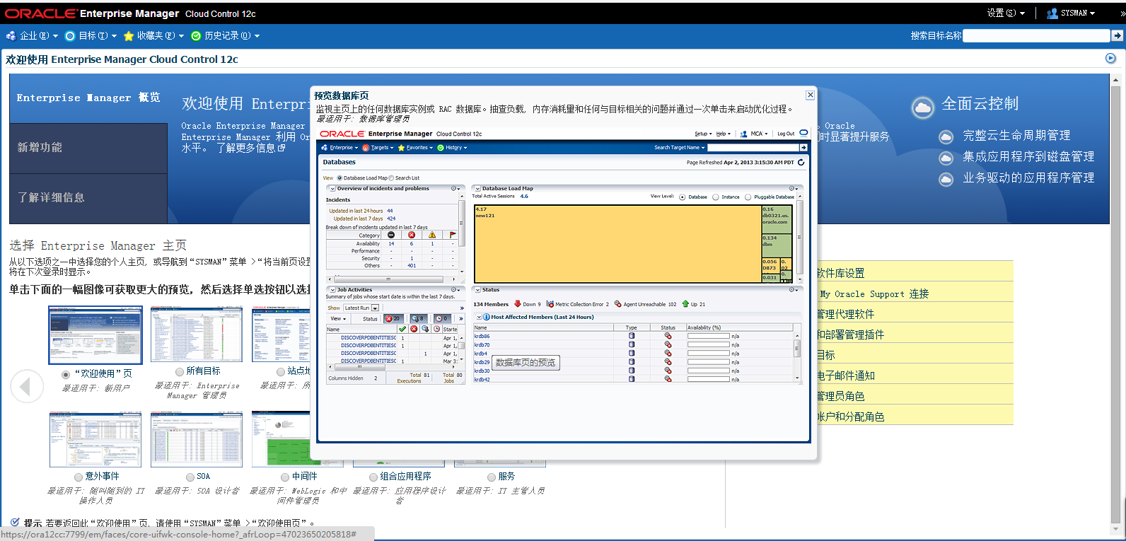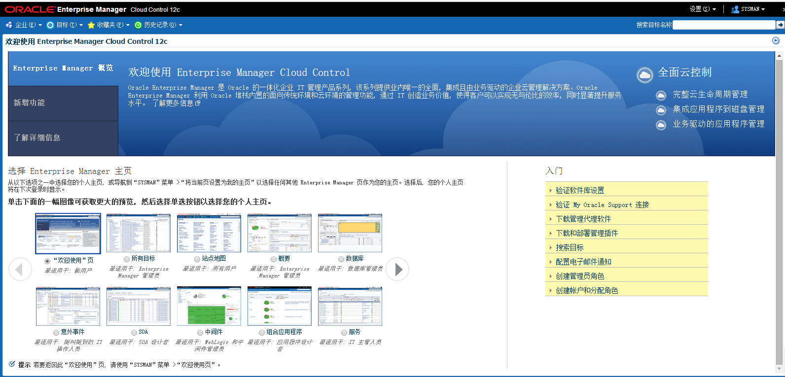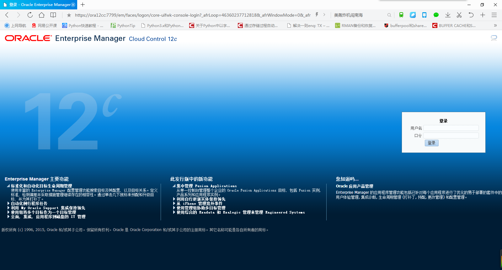 13.打开浏览器,输入地址https://hostname:7799/em(7799默认端口)访问EM Cloud Control 12c,输入sysman的身份认证