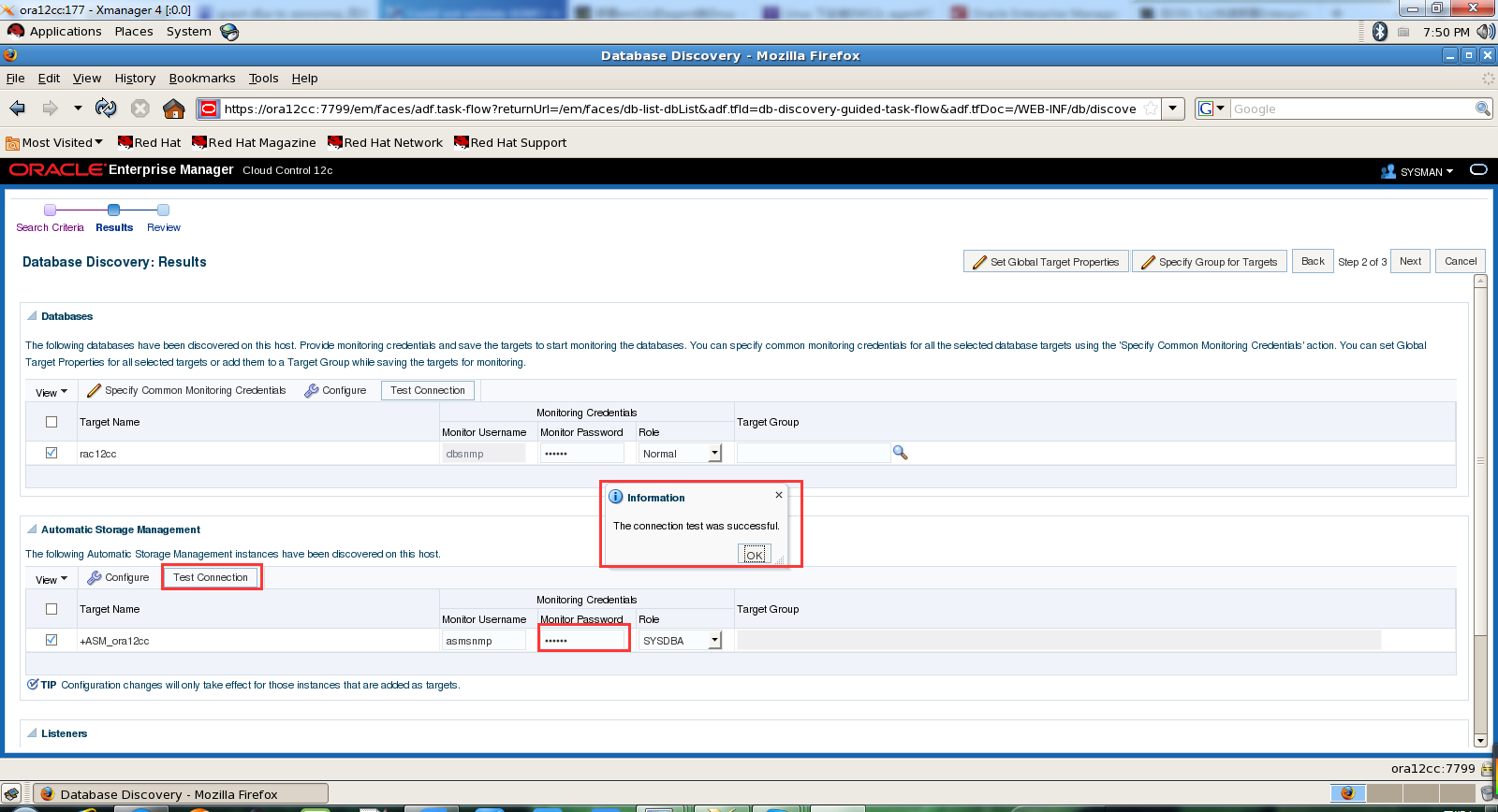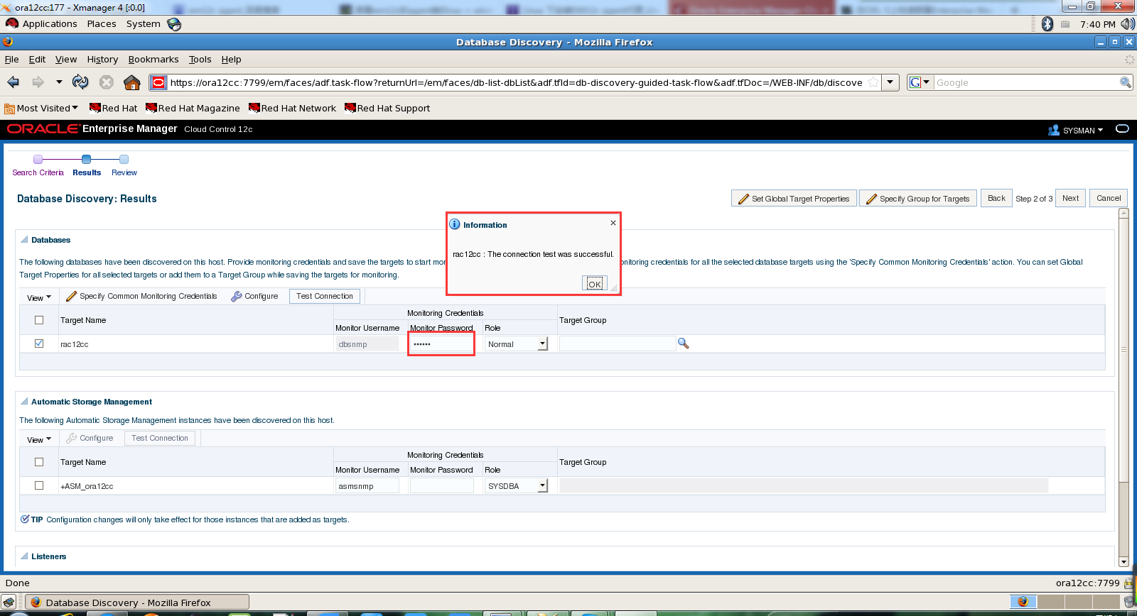Enter Enterprise Manager Root (SYSMAN) Password :