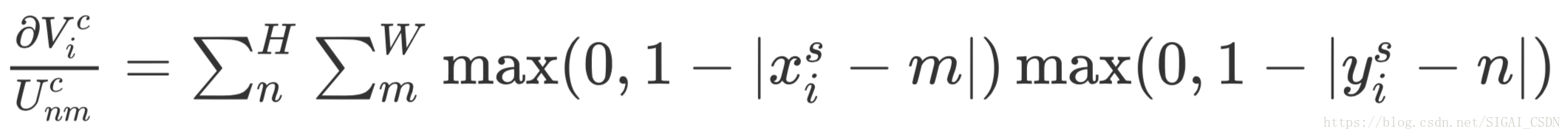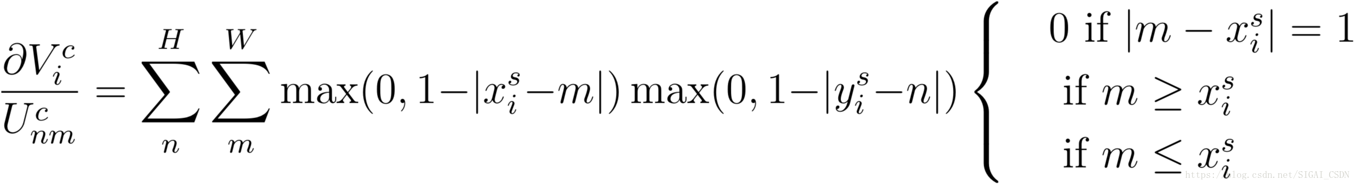 y_{i}^{s})周围四个点的score计算最终score,由于max函数可导,我们可以有如下偏导数计算公式: