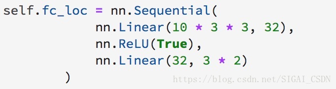 (2)定义Localisation net的变换参数θ回归部分,为两层全连接层内接Relu: