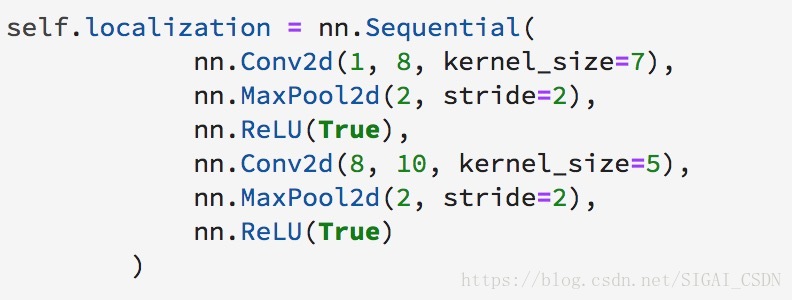 (1)首先定义Localisation net的特征提取部分,为两个Conv层后接Maxpool和Relu操作: