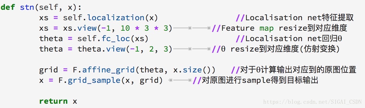 (3)在nn.module的继承类中定义完整的STN模块操作: