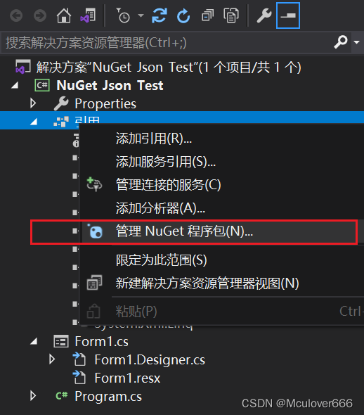 以上就是诚心吐司最近收集整理的关于C#上位机开发(十七)—— 基于NuGet安装并使用包(Visual Studio)一、NuGet二、添加 Newtonsoft.Json Nuget 包的全部内容,更多相关C#上位机开发(十七)——内容请搜索靠谱客的其他文章。