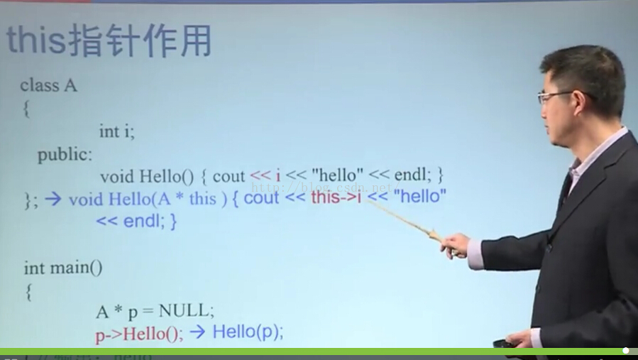图二是错误的,因为,p传入Hello()的时候,是将形参this替换了。而this指针是指向i的,但是p = NULL;
