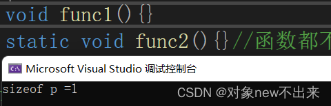 static void func2(){}//函数都不属于类的对象上,只有非静态成员变量才占用类对象内存空间.
