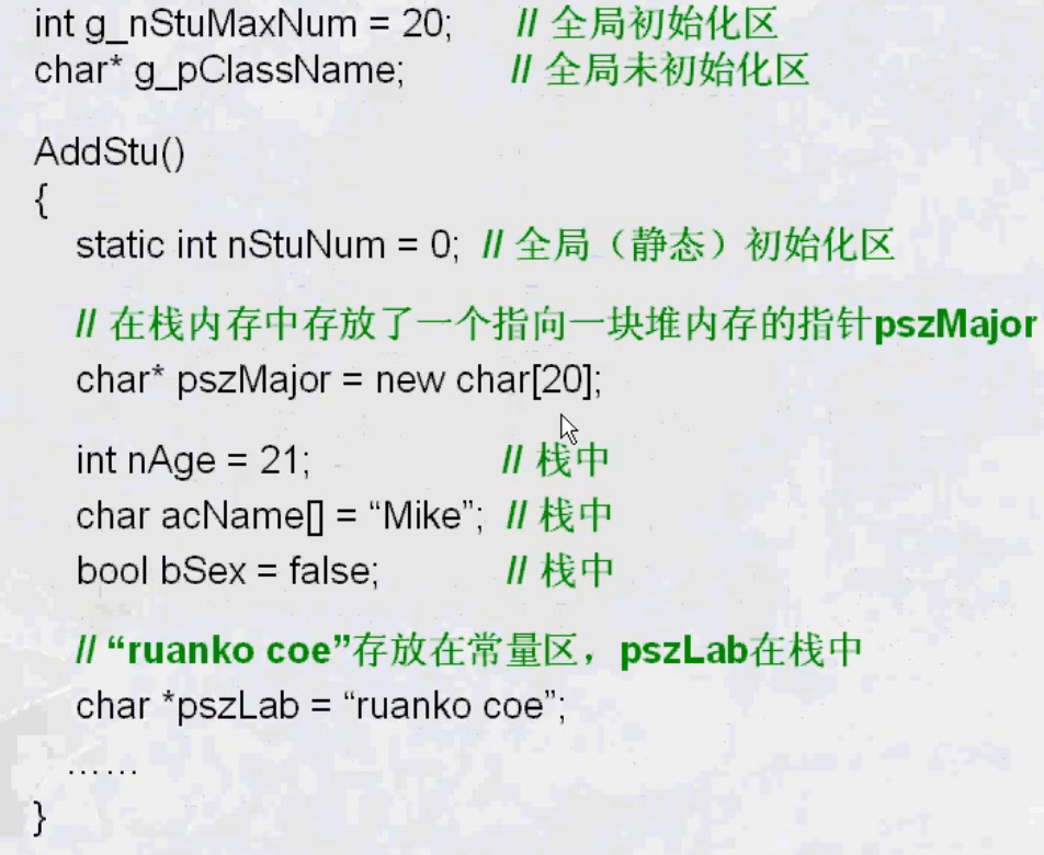 需要非常注意的是:堆中和栈中的数据回收是不一样的,操作堆内存,如果分配了内存,就有责任回收,否则会造成内存泄露,函数中在栈区分配的局部变量,在函数结束时,会自动回收与释放空间