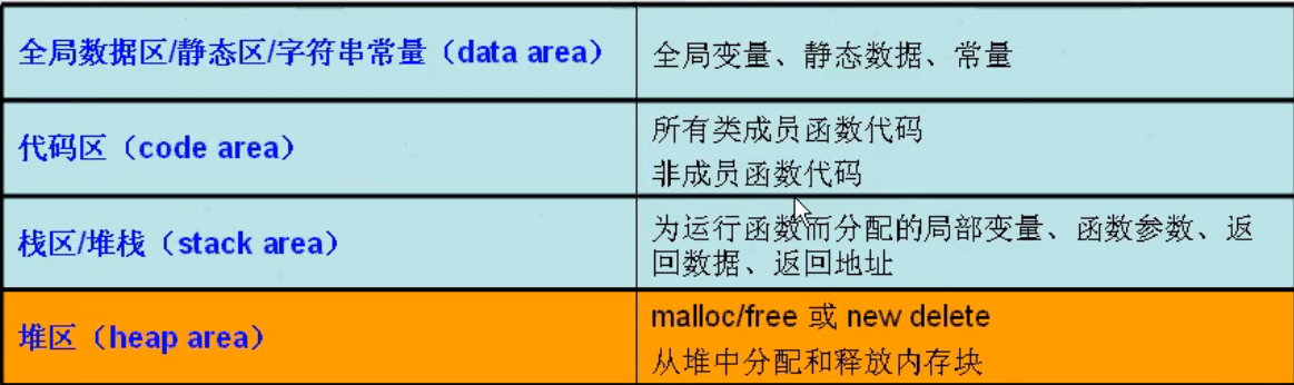 C++程序的内存一般分为四个区,如图: