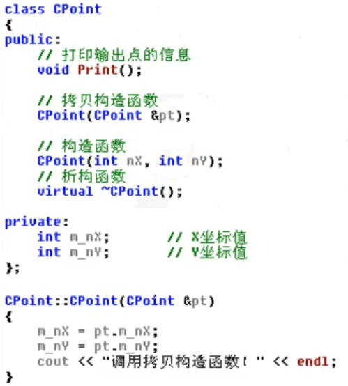- 如果程序中没有为类声明一个拷贝构造函数,则编译器自己生成一个默认的拷贝构造函数