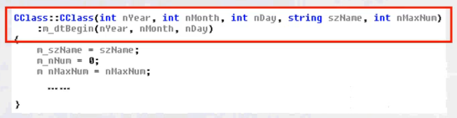当我们的类进行组合之后,怎样对类进行初始化呢?一般来说不仅要负责对本类中的类型成员进行初始赋值,也要对对象成员进行初始话。声明格式如下: