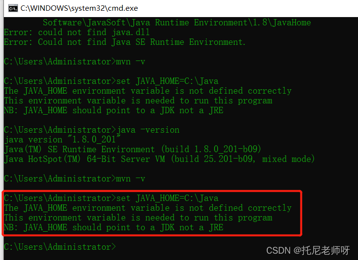 maven报错JAVA_HOME should point to a JDK not a JRE