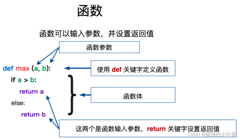 def 函数名(参数列表): 函数体调用:函数名(参数)