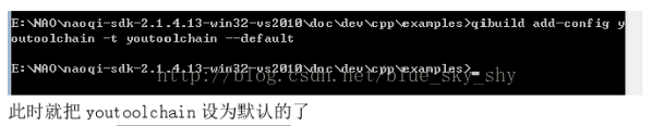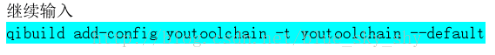 接着键入qibuild add-config youtoolchain -t youtoolchain --default,设置默认toolchain