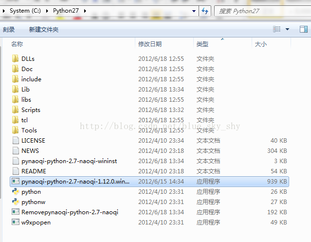 将Pynaoqi-python-2.7-naoqi-1.12.0.win32拷贝到Python的目录中