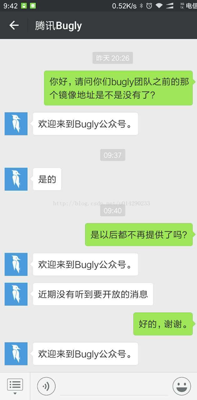 因腾讯bugly业务调整,镜像地址失效,下面的办法已经不适用了。