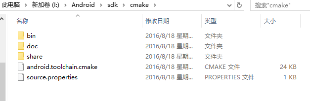 cmake和ndk版本要对应,不然打开Android studio 会报错,我的版本是:android-ndk-r13b-windows-x86_64 和 cmake-3.6.3155560-windows-x86_64 。解压放入指定目录就可以了。