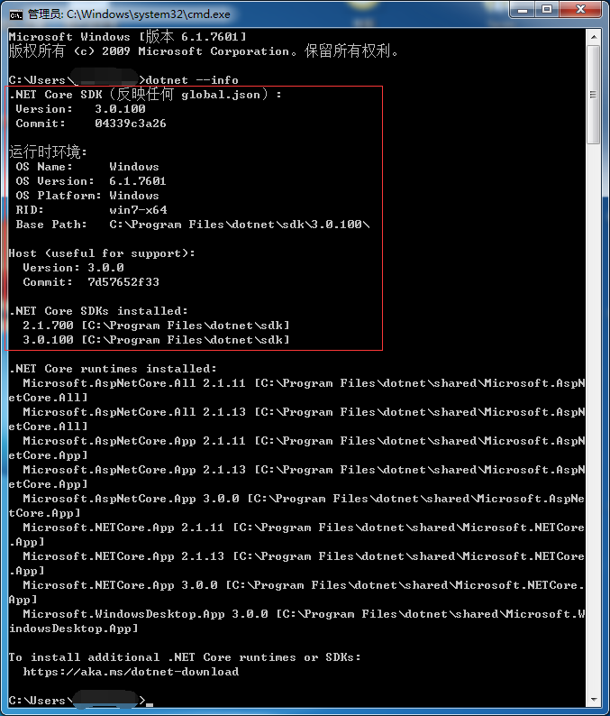 检验是否安装core 3.0 ----cmd 命令dotnet --info