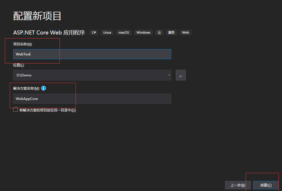 创建新项目---选择ASP.NET Core Web应用程序