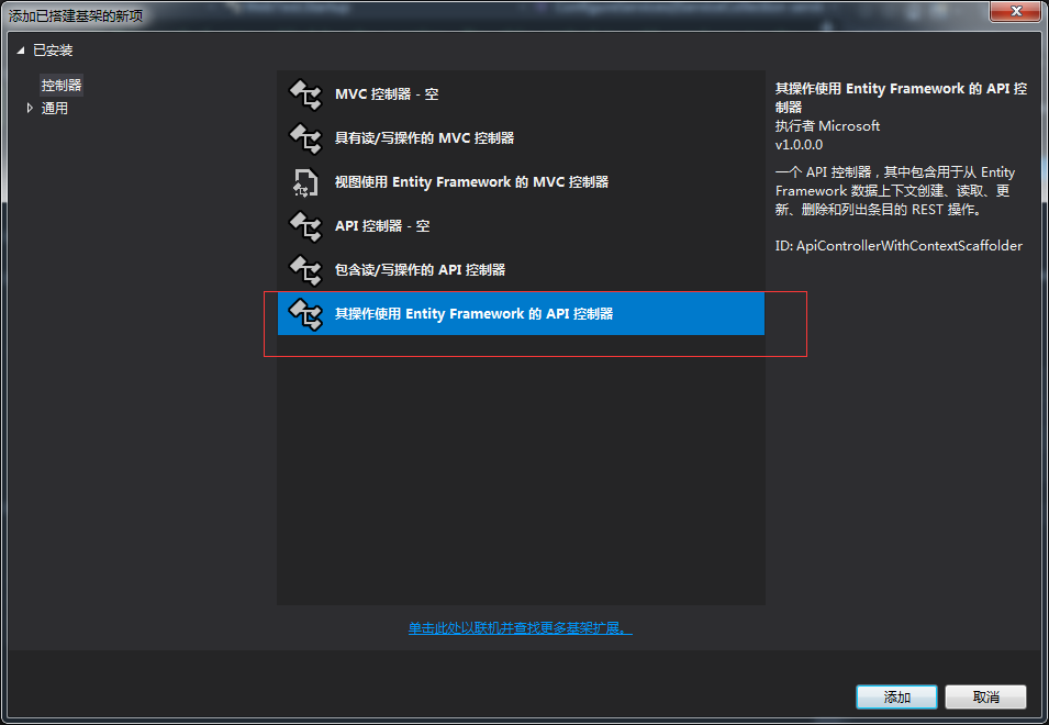 下一步,添加控制器:右键Controllers文件夹,