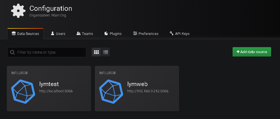 前面的文章中已经说过了InfluxDB相关词操作,我现在创建了一个lymtest的数据库 并创建好了用户名 密码 设置好了权限,下面需要配置连接的数据源