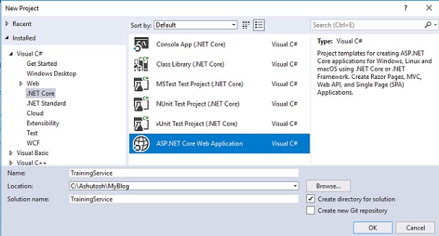 让我们从Visual Studio开始,使用.NET Core创建一个新的Web服务(REST)应用程序。